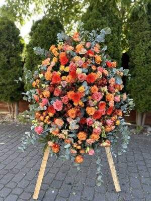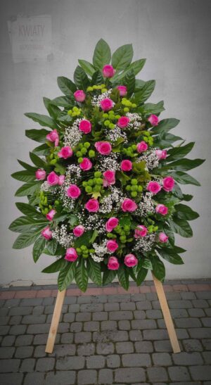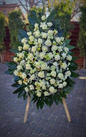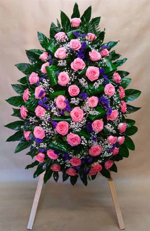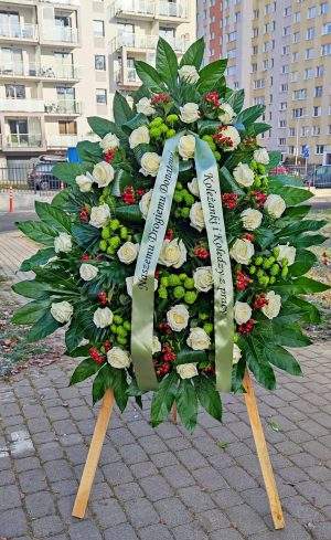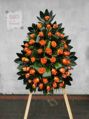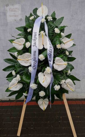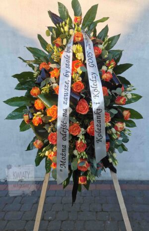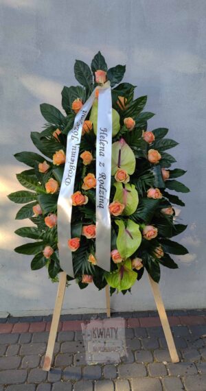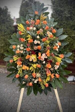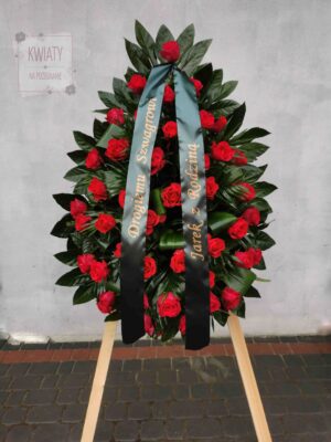 Wieńce pogrzebowe upamiętniające zmarłego. Całość musi charakteryzować się prostotą, co dotyczy zarówno stonowanej kolorystyki, jak i umiaru w dekorowaniu. Taka kompozycja ma często dość duże rozmiary oraz z tego względu wieńce kondolencyjne są bardzo dobrym rozwiązaniem jako pożegnalne kwiaty od większej grupy żałobników, np. kolegów z pracy lub innych znajomych, ale też dalszej rodziny, gdyż ta bliższa przeważnie wręcza indywidualnie mniejsze wiązanki. Do składania wieńców wybierana jest niewielka delegacja, aby pożegnanie zmarłego zachowało stonowany ton. Stopień pokrewieństwa lub zażyłości ze zmarłym nie ma znaczenia przy doborze wieńca pogrzebowego. Zazwyczaj dokonuje się go w zależności od budżetu. Ceny zwykle zaczynają się od 300 złotych. Wieści o odejściu członków rodziny lub znajomych często nadchodzą niespodziewanie. Pomimo smutku trzeba szybko zorganizować wszystko, co potrzebne do uczestnictwa w pogrzebie. Mając to na uwadze, nasza pracowania florystyczna mieszcząca się w Warszawie, specjalizująca się w żałobnych bukietach, może przygotować ekspresowe wieńce i wiązanki na pogrzeb, nawet na kilka godzin przed uroczystością. Tym samym, jeżeli potrzebny jest wieniec pogrzebowy Warszawa to region naszej działalności, gdzie szybko wykonujemy tego typu zlecenia. Jeśli czasu mamy trochę więcej, możemy zaproponować kompozycję zgodną z indywidualnymi życzeniami, która stworzy unikalną oprawę uroczystości.