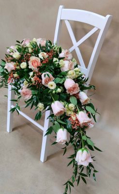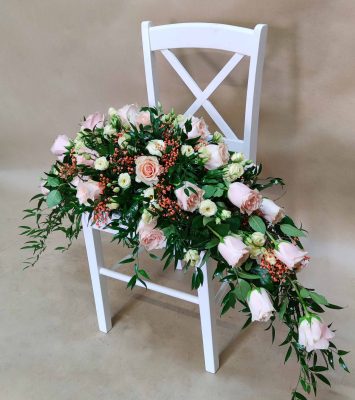 Całość została wypełniona jest liśćmi ruskusa oraz gipsówką