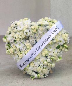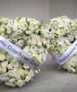Wieniec pogrzebowy wykonany jest na florecie który zaopatruje kwiaty w wodę.