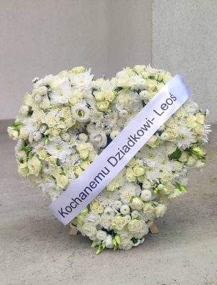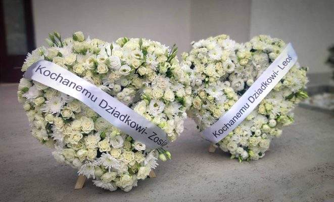 Wieniec pogrzebowy wykonany jest na florecie który zaopatruje kwiaty w wodę.