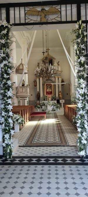 Wianek pod urnę jest wykonywany na florecie, który zaopatruje kwiaty w wodę, dzięki temu nasz produkt zachowuje długą świeżość.