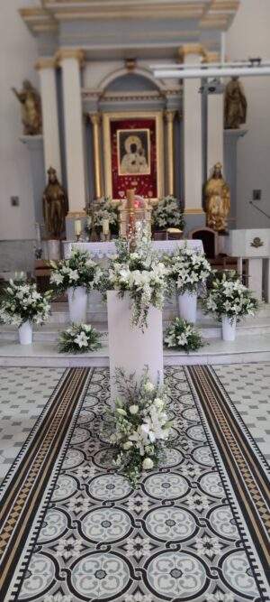 Dekoracja składa się z dwóch elementów ( wianek pod urnę oraz kompozycja pod postument ).