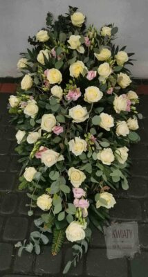 Wiązanka pogrzebowa wykonana jest na florecie który zaopatruje kwiaty w wodę. Dzięki temu nasz produkt jest bardzo trwały.