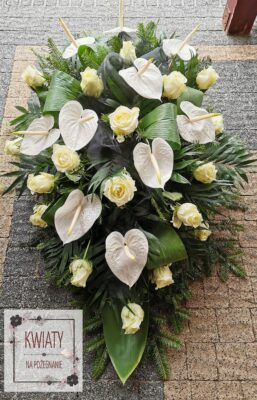 Wiązanka pogrzebowa wykonana jest na florecie który zaopatruje kwiaty w wodę. Dzięki temu nasz produkt jest bardzo trwały.