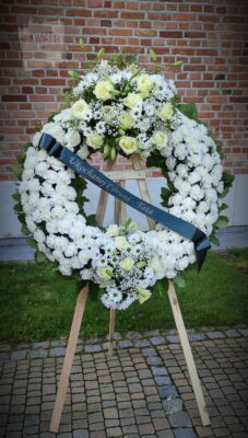 Wieniec pogrzebowy wykonany jest na florecie który zaopatruje kwiaty w wodę.