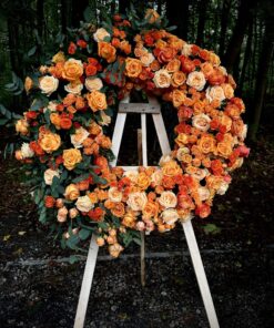 Wieniec pogrzebowy wykonany jest na florecie który zaopatruje kwiaty w wodę.