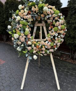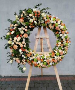 Rozmiar 1 = 150cm wysokośći, średnica koła 65 cm + kwiaty