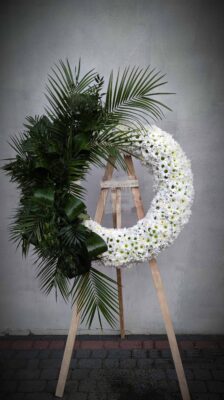 Wieniec pogrzebowy wykonany jest na florecie który zaopatruje kwiaty w wodę.